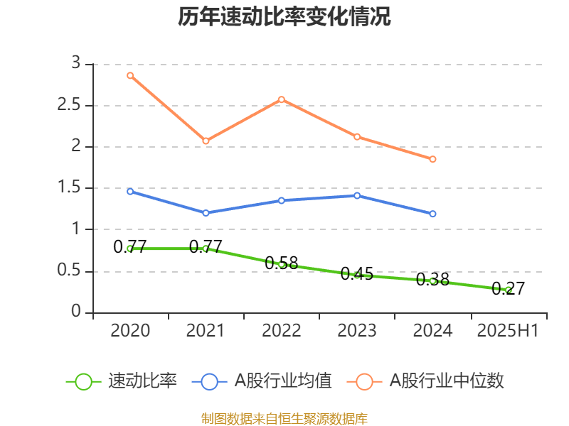 2025年上半年,公司流动比率为0.60,速动比率为0.27。
