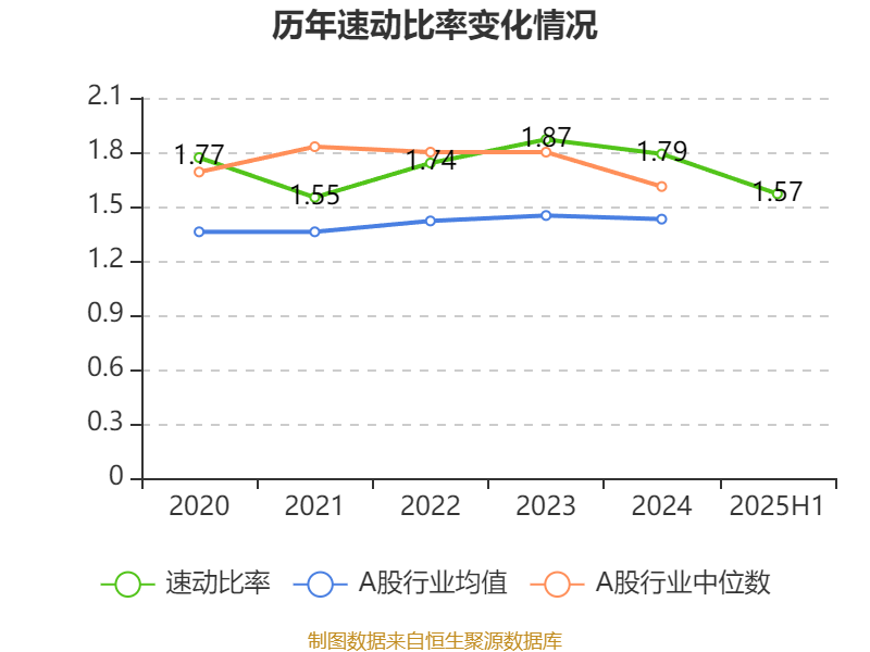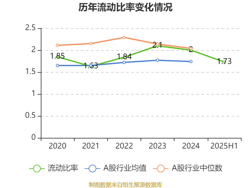 2025年上半年,公司流动比率为1.73,速动比率为1.57。