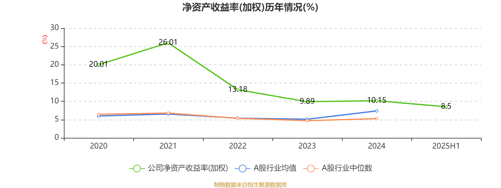 2025年上半年,公司平均净资产收益率为8.5%,较上年同期上升2.06个百分点。