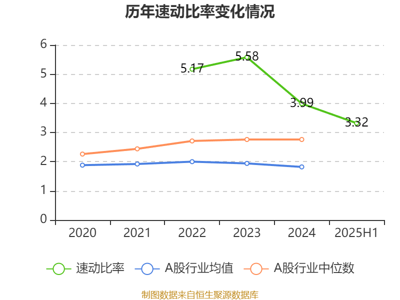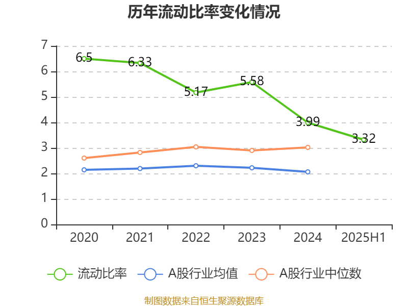 2025年上半年,公司流动比率为3.32,速动比率为3.32。
