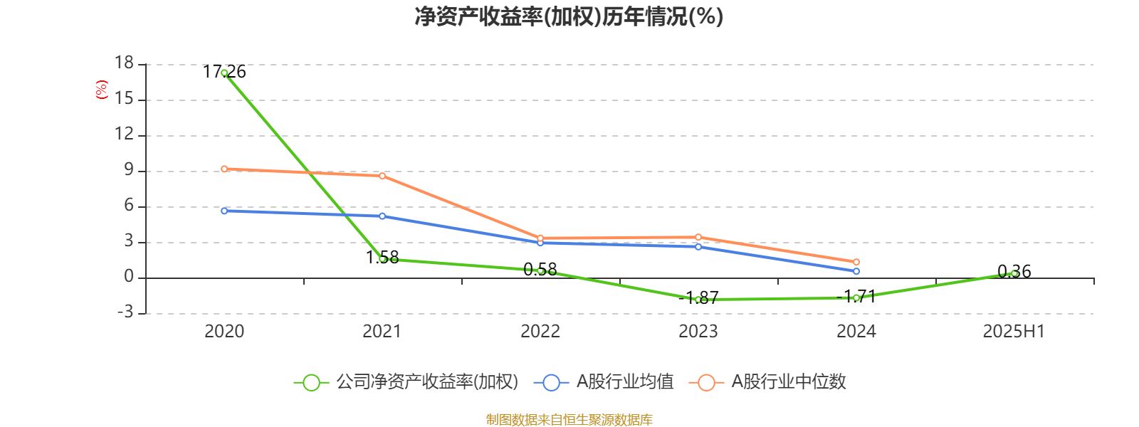 2025年上半年,公司平均净资产收益率为0.36%,较上年同期上升1.27个百分点。