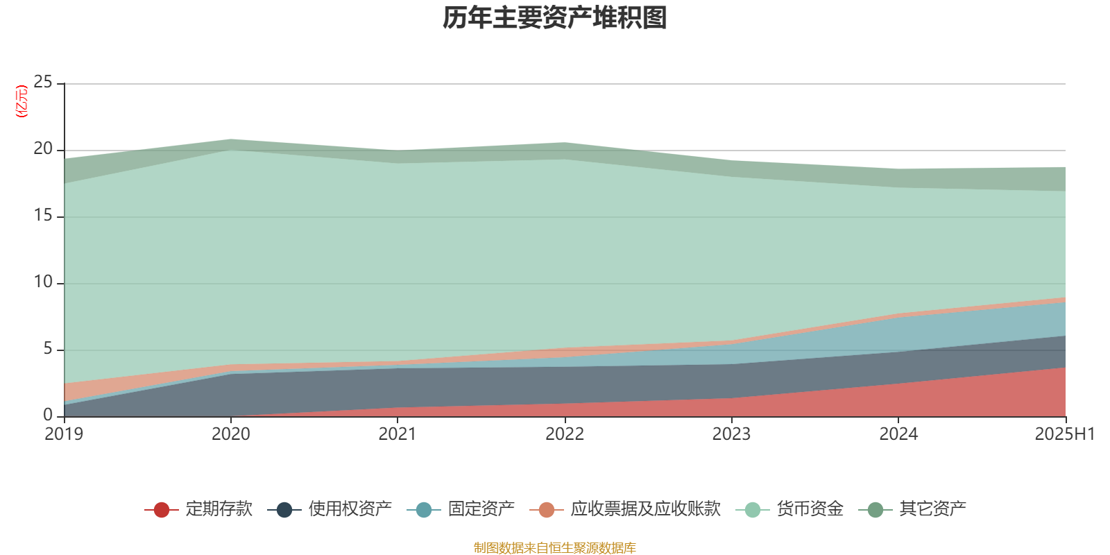 资产重大变化方面,截至2025年上半年,公司货币资金较上期末减少15.81%,占公司总资产比重下降8.33个百分点;定期存款较上期末增加49.39%,占公司总资产比重上升6.39个百分点;预付账款较上期末增加36.5%,占公司总资产比重上升0.66个百分点;固定资产较上期末减少2.29%,占公司总资产比重下降0.41个百分点。