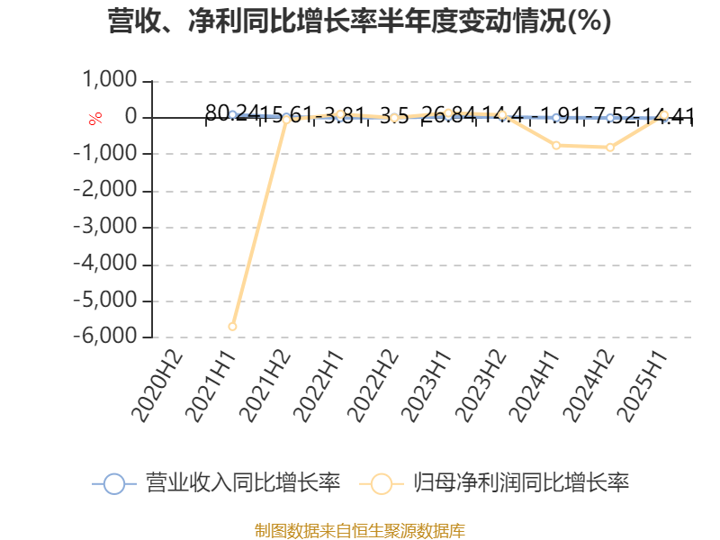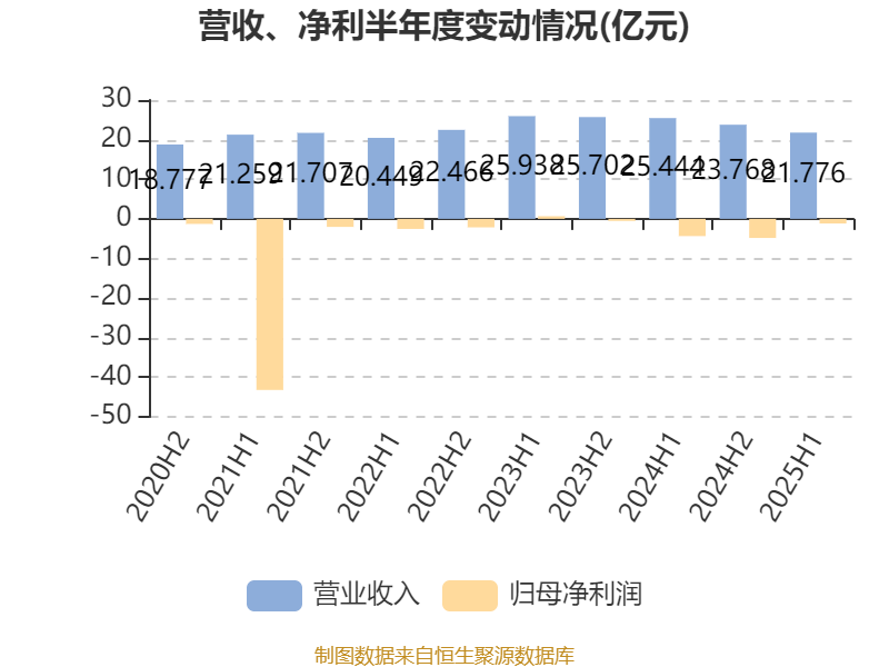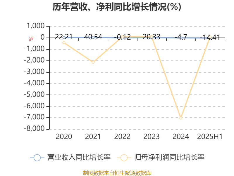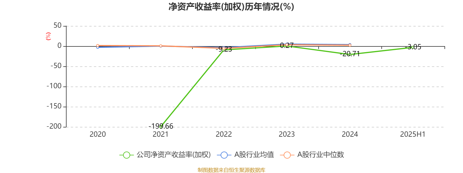 2025年上半年,公司平均净资产收益率为-3.05%,较上年同期上升6.36个百分点。