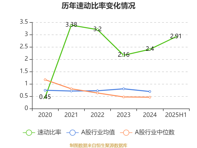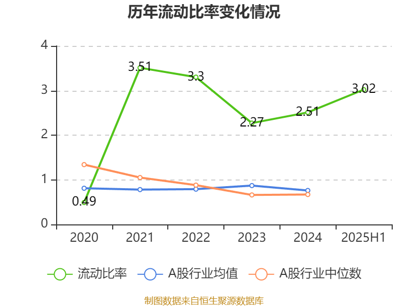 2025年上半年,公司流动比率为3.02,速动比率为2.91。
