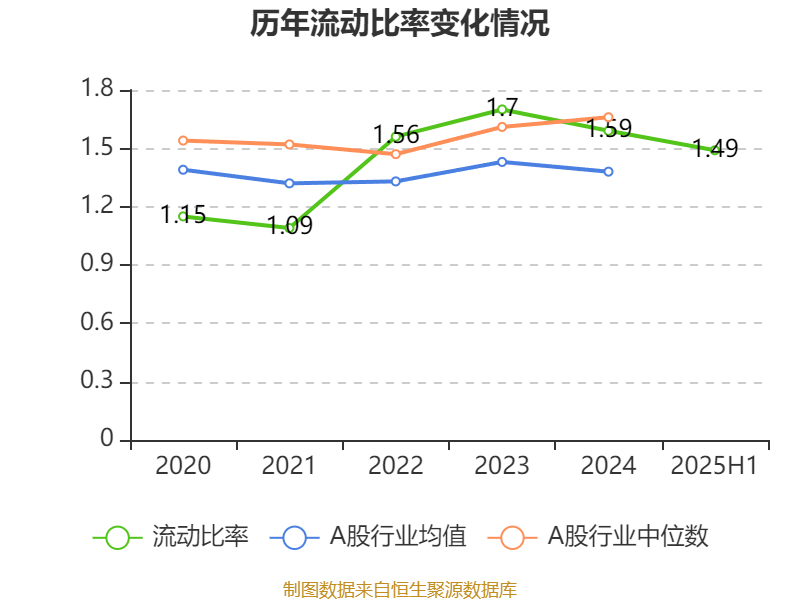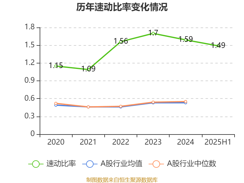 2025年上半年,公司流动比率为1.49,速动比率为1.49。