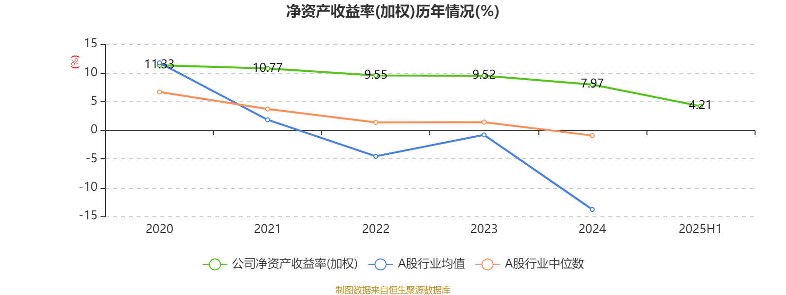 2025年上半年,公司平均净资产收益率为4.21%,较上年同期上升0.3个百分点。