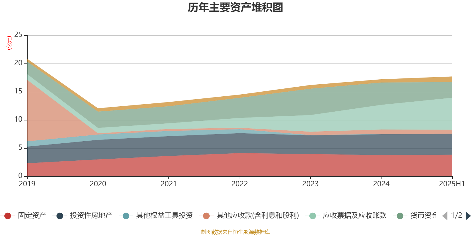 资产重大变化方面,截至2025年上半年,公司货币资金较上期末减少29.66%,占公司总资产比重下降7.28个百分点;应收票据及应收账款较上期末增加29.36%,占公司总资产比重上升6.56个百分点;交易性金融资产占公司总资产的1.34%,上期末为0;投资性房地产较上期末减少0.75%,占公司总资产比重下降0.76个百分点。