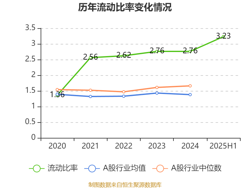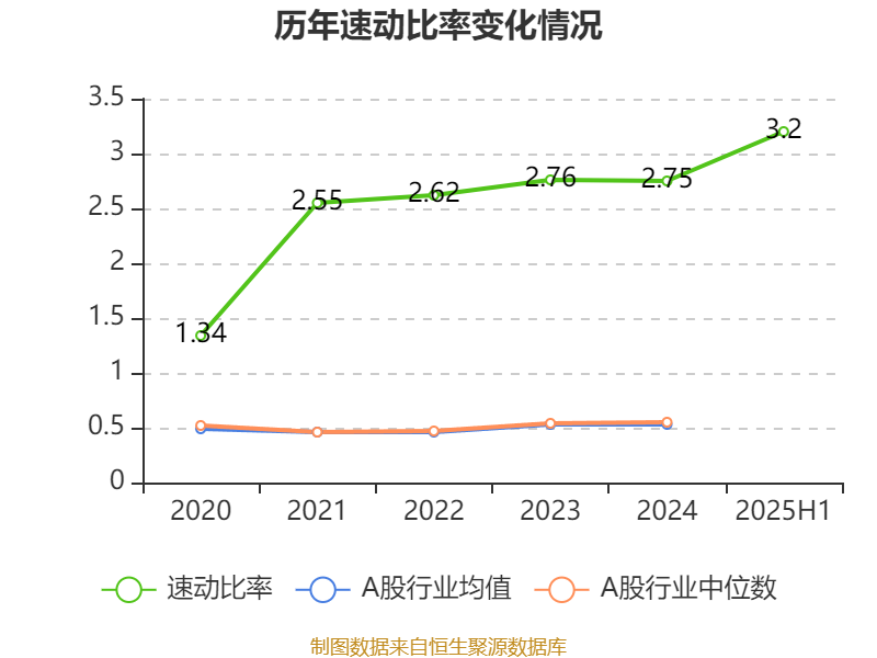2025年上半年,公司流动比率为3.23,速动比率为3.2。