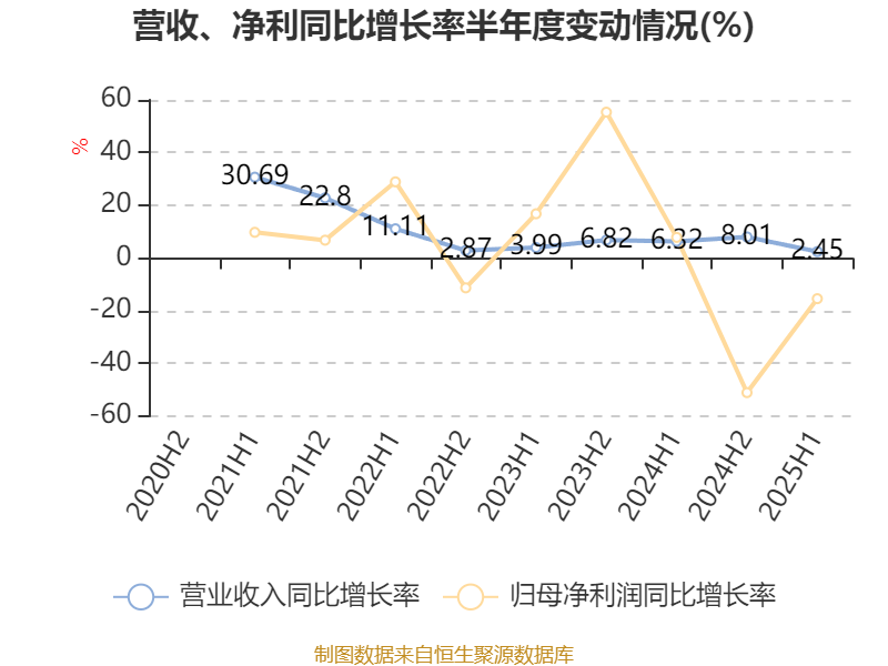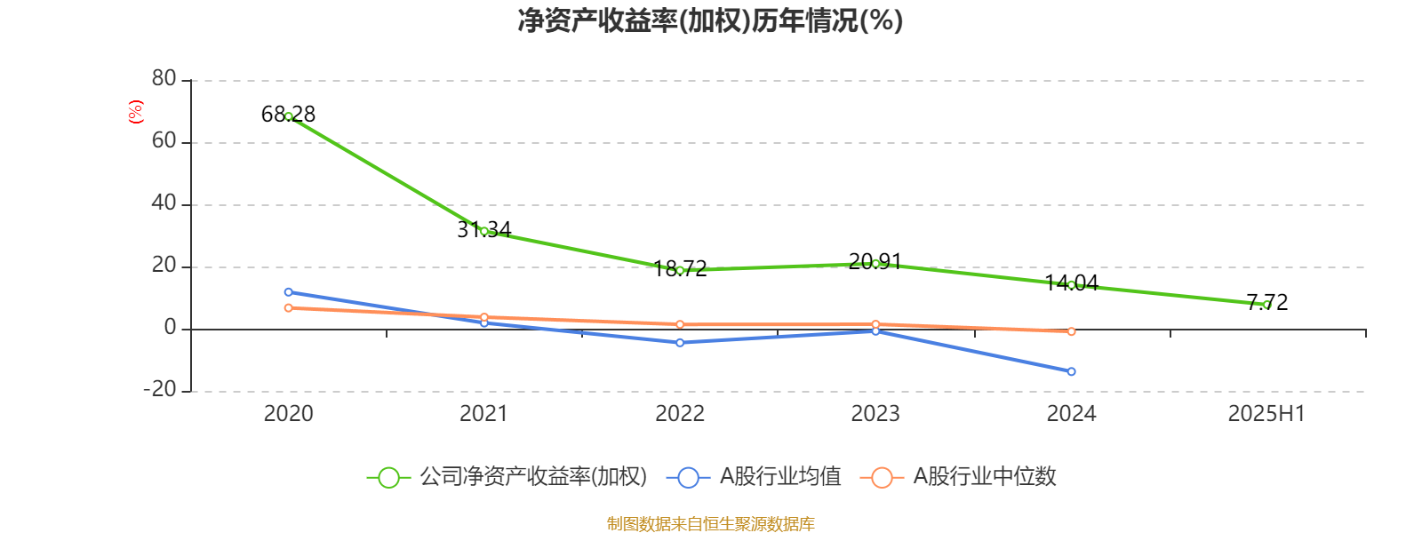 2025年上半年,公司平均净资产收益率为7.72%,较上年同期下降2.54个百分点。