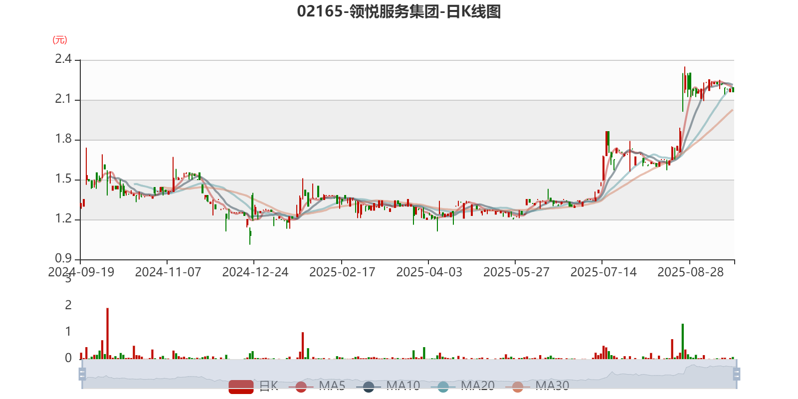 以9月19日收盘价计算,领悦服务集团目前市盈率(TTM)约7.75倍,市净率(TTM)约0.85倍,市销率(TTM)约0.85倍。