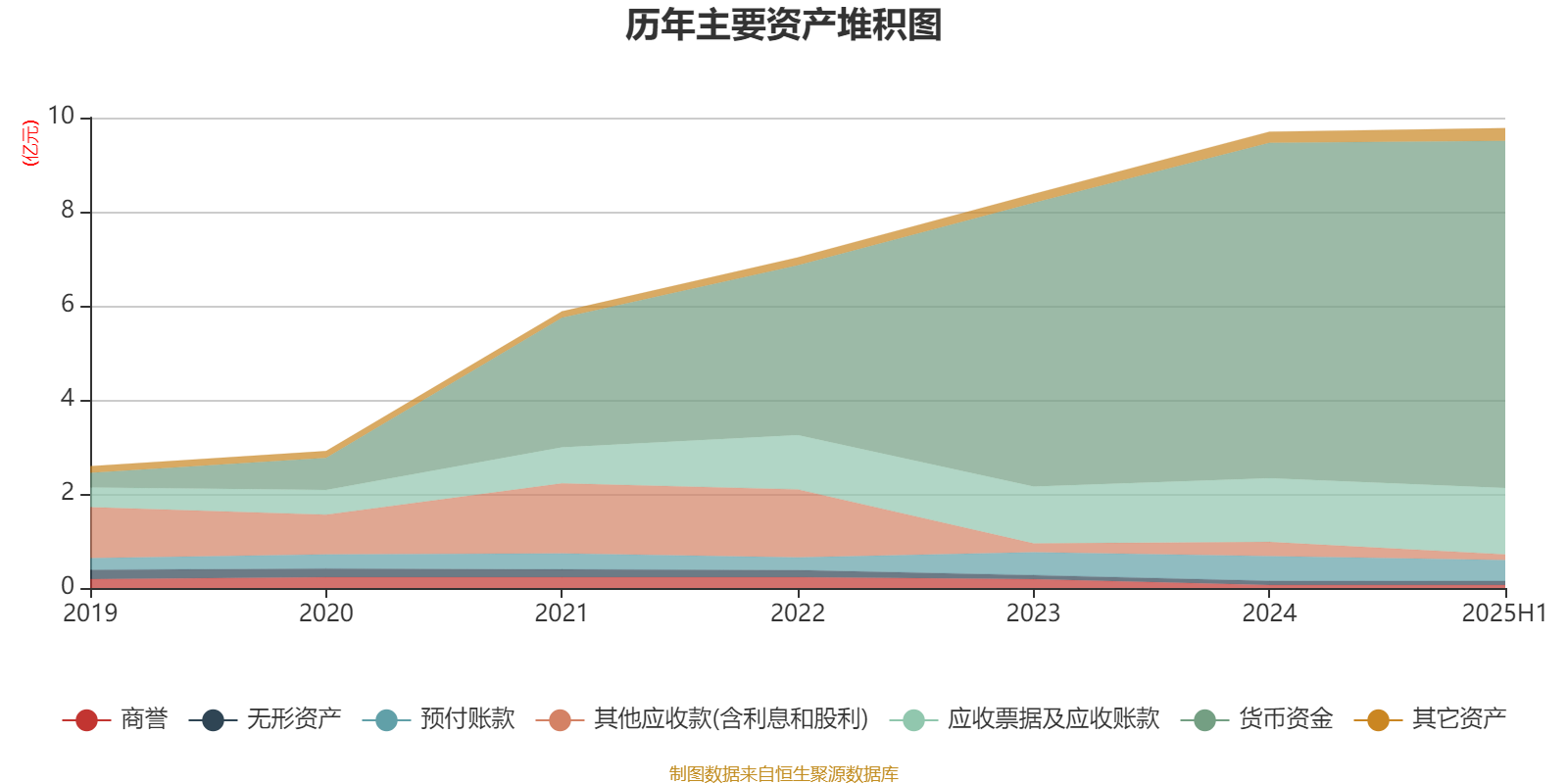 资产重大变化方面,截至2025年上半年,公司货币资金较上期末增加3.5%,占公司总资产比重上升2个百分点;其他应收款(含利息和股利)较上期末减少60.03%,占公司总资产比重下降1.86个百分点;预付账款较上期末减少15.59%,占公司总资产比重下降0.88个百分点;应收票据及应收账款较上期末增加4.2%,占公司总资产比重上升0.48个百分点。