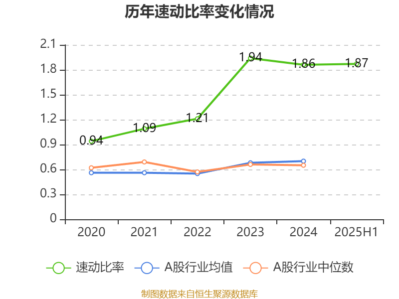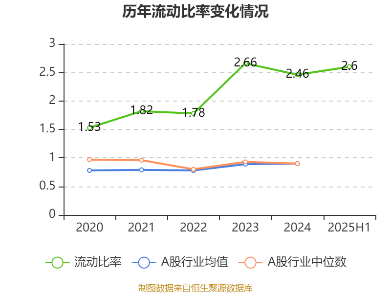 2025年上半年,公司流动比率为2.60,速动比率为1.87。