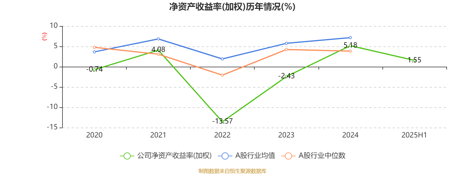 2025年上半年,公司平均净资产收益率为1.55%,较上年同期下降1.77个百分点。