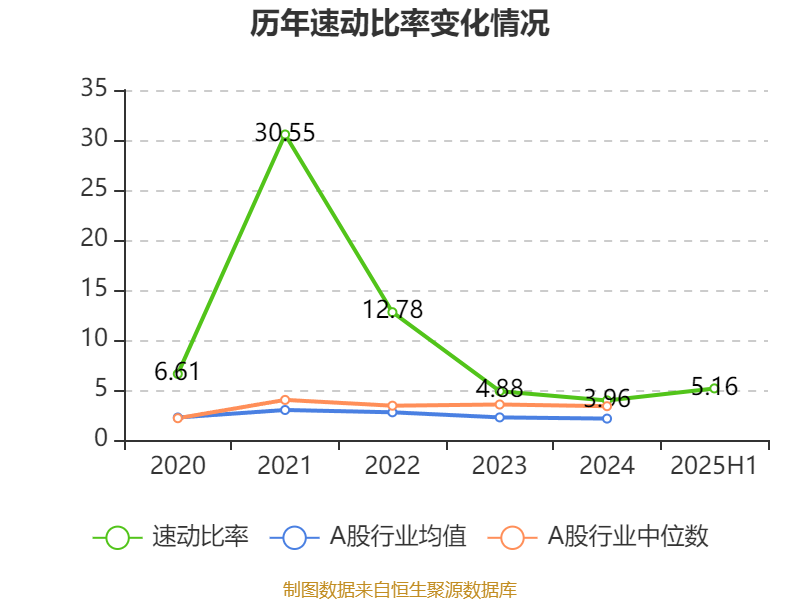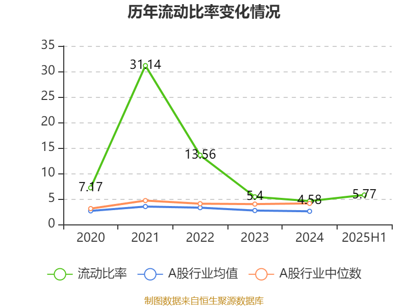 2025年上半年,公司流动比率为5.77,速动比率为5.16。