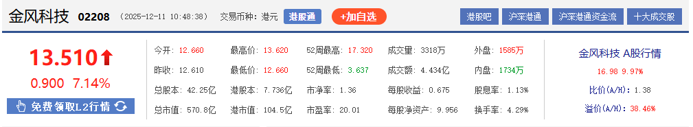 港股异动|金风科技H股盘中涨近8% 港股风电股持续拉升
