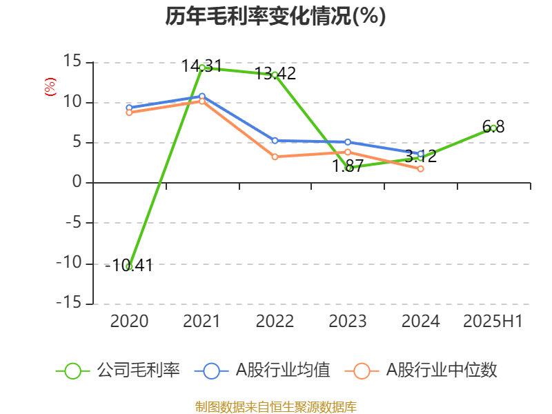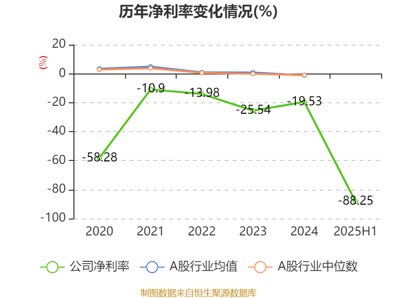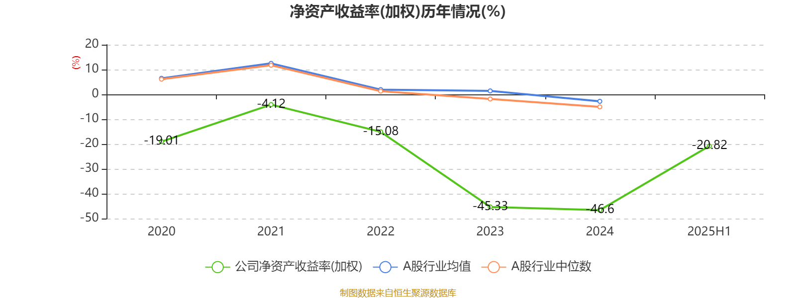 2025年上半年,公司平均净资产收益率为-20.82%,较上年同期上升1.04个百分点。