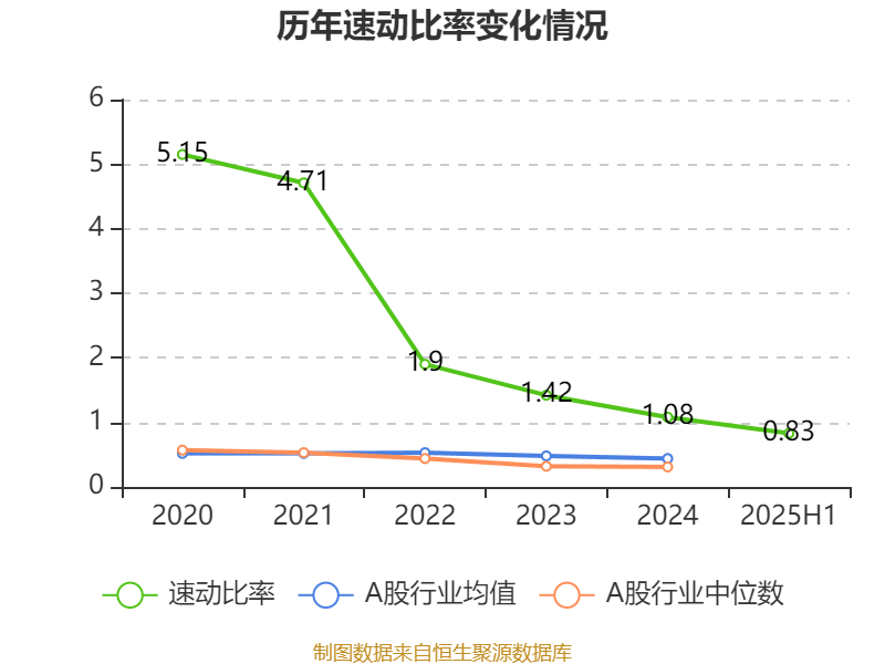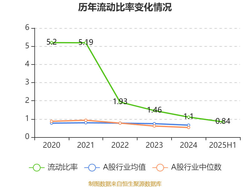 2025年上半年,公司流动比率为0.84,速动比率为0.83。