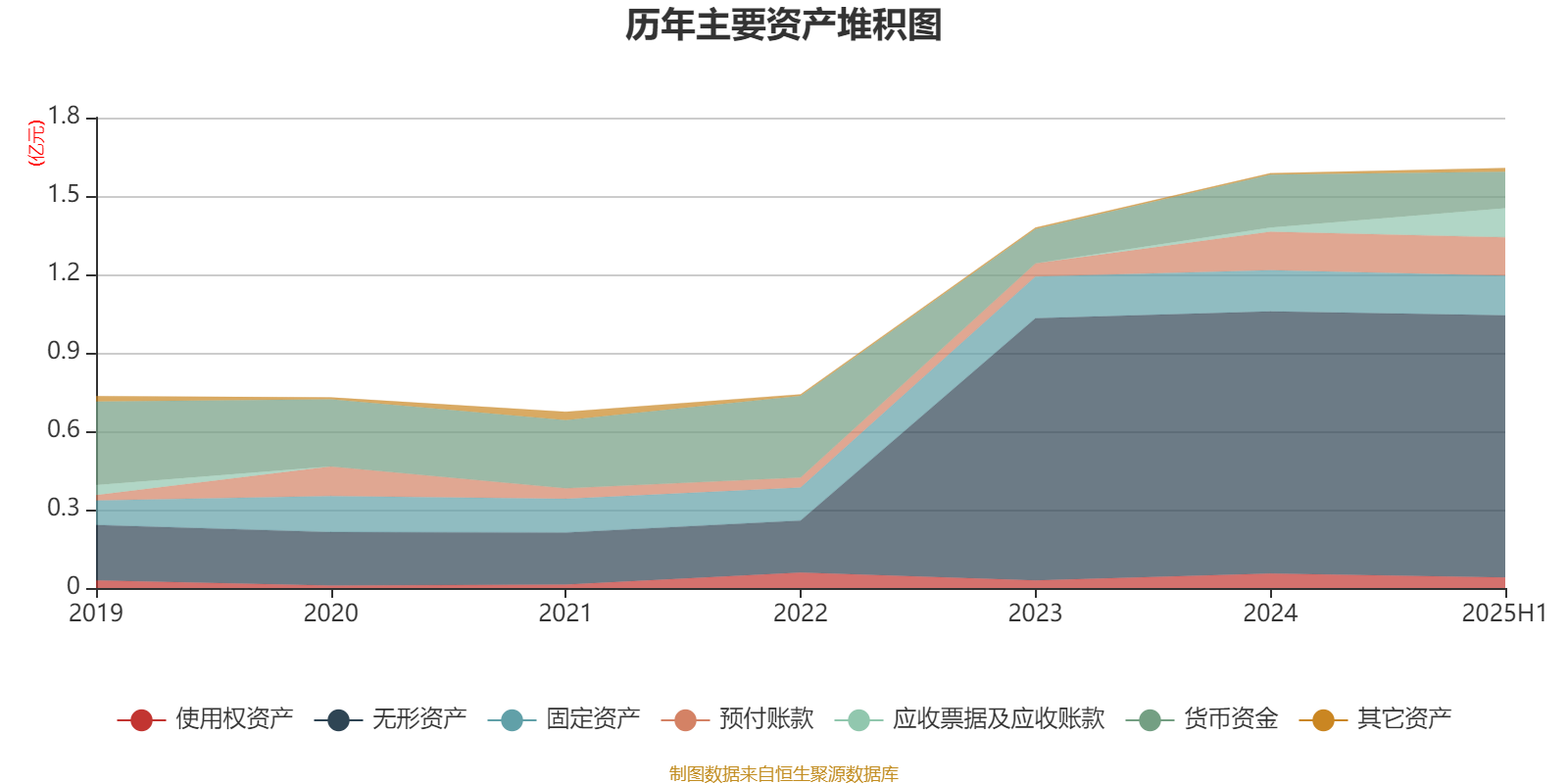 资产重大变化方面,截至2025年上半年,公司应收票据及应收账款较上期末增加585.79%,占公司总资产比重上升5.89个百分点;货币资金较上期末减少31.08%,占公司总资产比重下降4.09个百分点;使用权资产较上期末减少25.97%,占公司总资产比重下降0.93个百分点;无形资产较上期末没有变化,占公司总资产比重下降0.83个百分点。