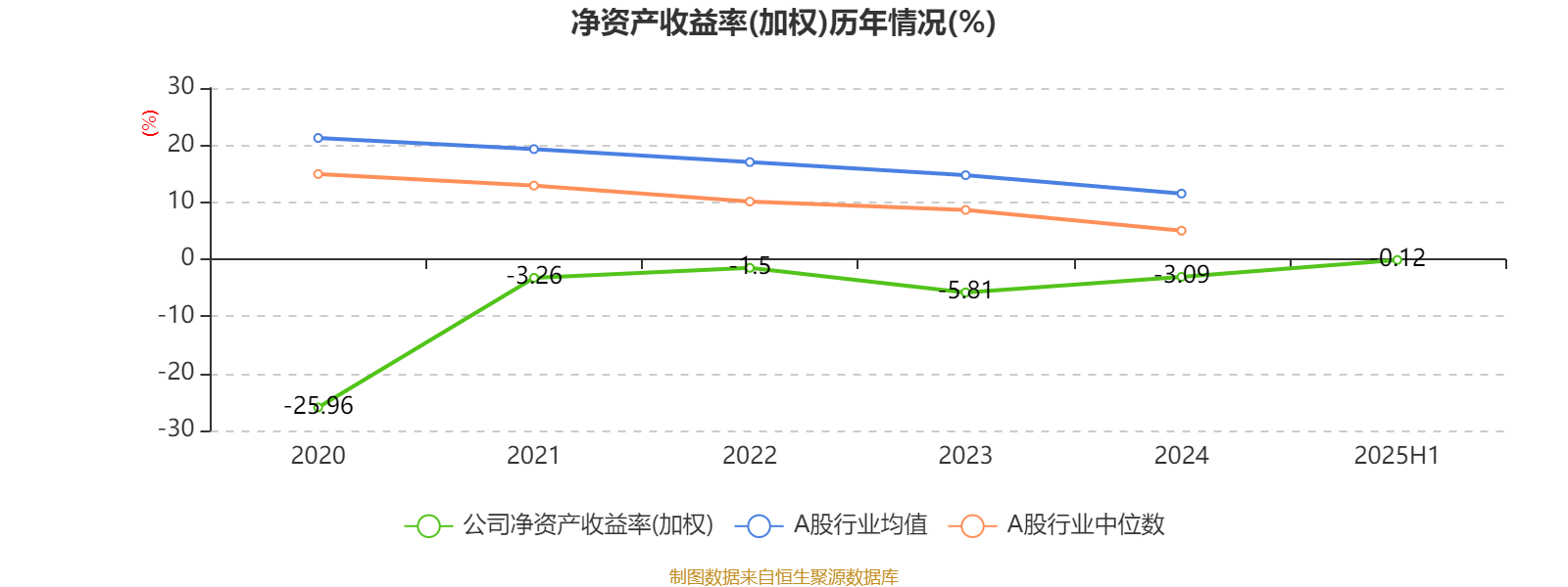 2025年上半年,公司平均净资产收益率为-0.12%,较上年同期上升1.73个百分点。