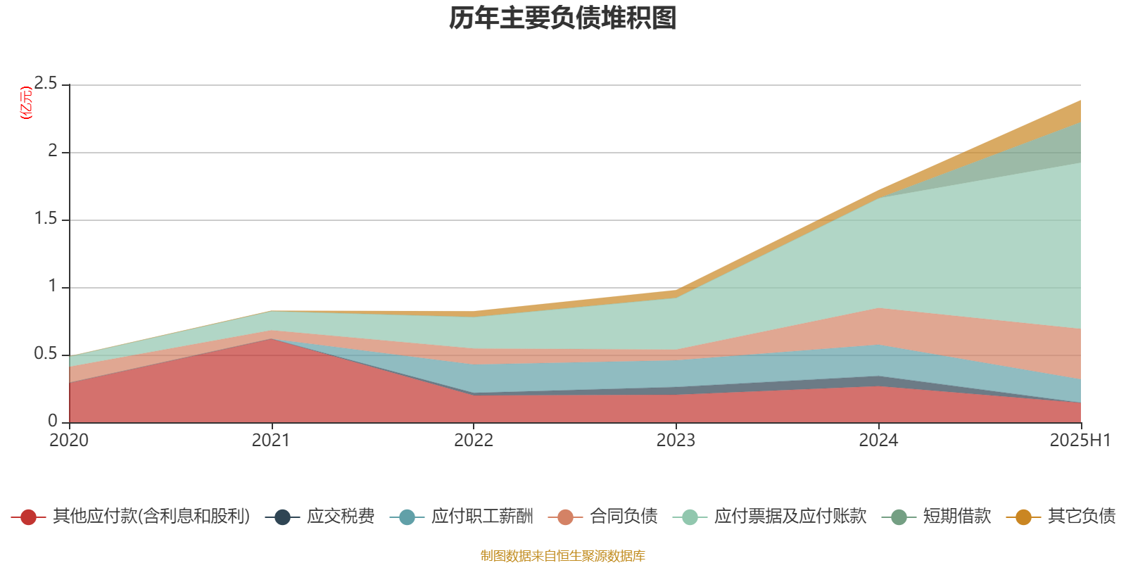 负债重大变化方面,截至2025年上半年,公司应付票据及应付账款较上期末增加51.64%,占公司总资产比重上升1.79个百分点;短期借款占公司总资产的1.36%,上期末为0;其他应付款(含利息和股利)较上期末减少46.39%,占公司总资产比重下降0.6个百分点;合同负债较上期末增加37.04%,占公司总资产比重上升0.42个百分点。