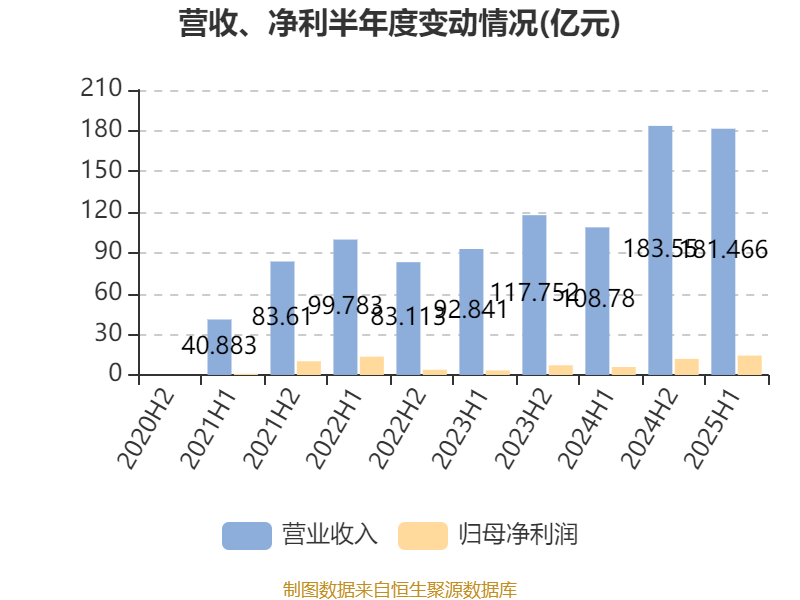 中证智能财讯力勤资源(02245)9月29日披露2025年中期报告。报告期内,公司实现营业收入181.47亿元,同比增长66.82%;归母净利润14.26亿元,同比增长143%;据报告显示,力勤资源基本每股收益为0.92元,平均净资产收益率为12.86%。