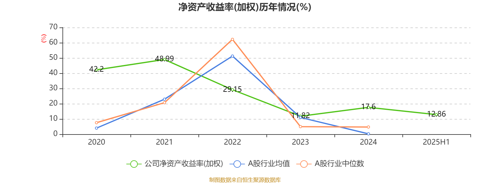 2025年上半年,公司平均净资产收益率为12.86%,较上年同期上升6.61个百分点。