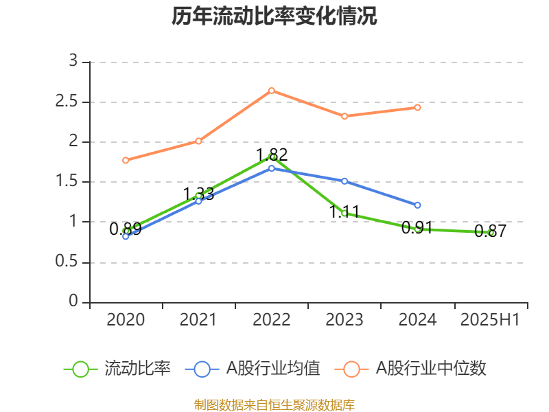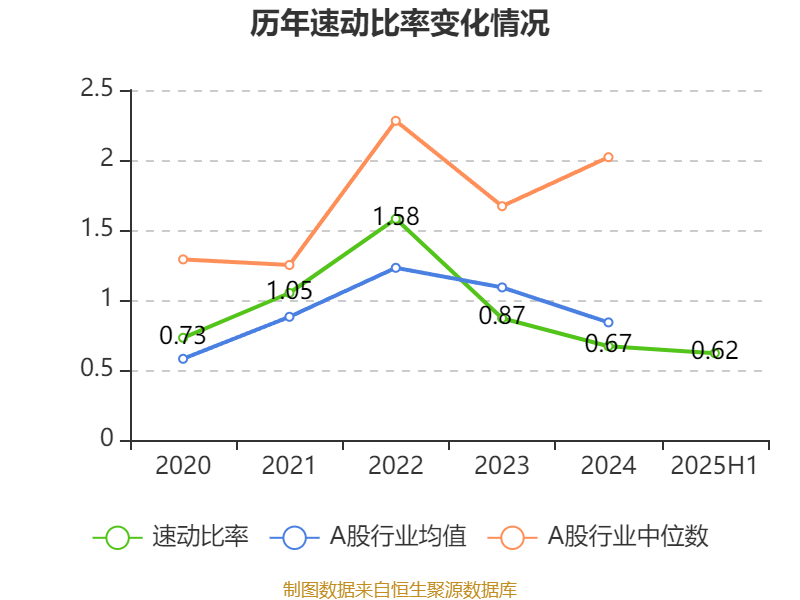 2025年上半年,公司流动比率为0.87,速动比率为0.62。