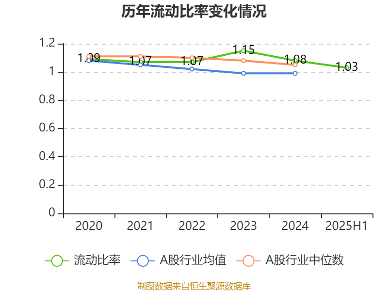 2025年上半年,公司流动比率为1.03,速动比率为1.03。