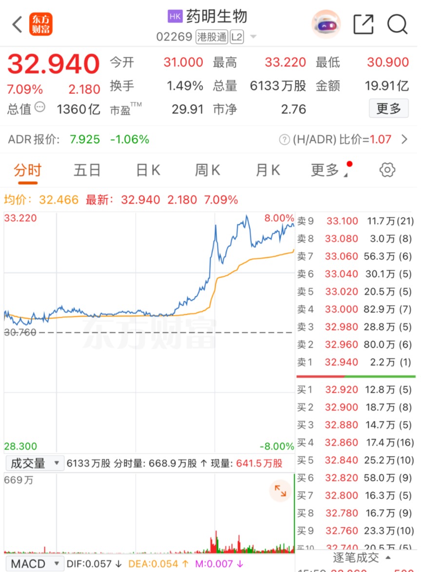 今日港股尾盘,创新药板块集体走强,药明生物、药明联合、药明康德等个股直线拉升。