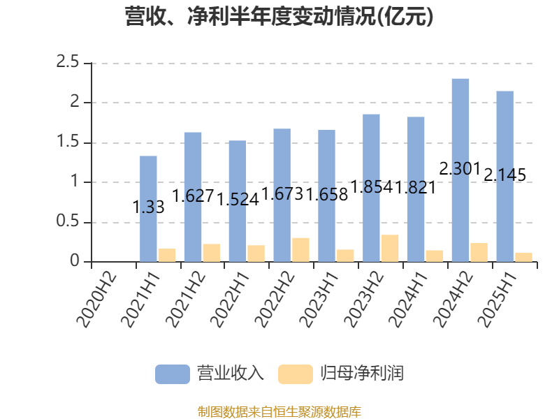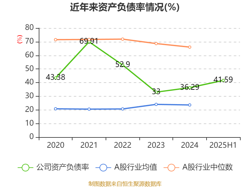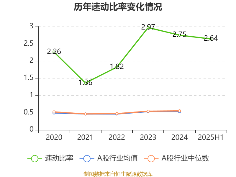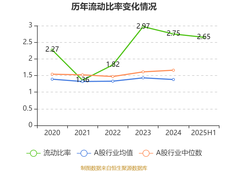 2025年上半年,公司流动比率为2.65,速动比率为2.64。