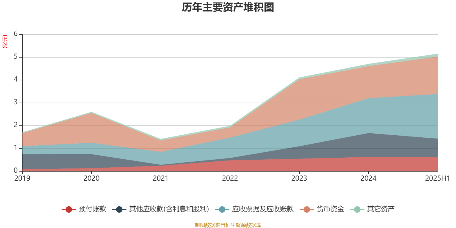资产重大变化方面,截至2025年上半年,公司其他应收款(含利息和股利)较上期末减少22.28%,占公司总资产比重下降6.45个百分点;应收票据及应收账款较上期末增加27.44%,占公司总资产比重上升5.37个百分点;货币资金较上期末增加17.11%,占公司总资产比重上升2.09个百分点;预付账款较上期末减少1.55%,占公司总资产比重下降1.31个百分点。