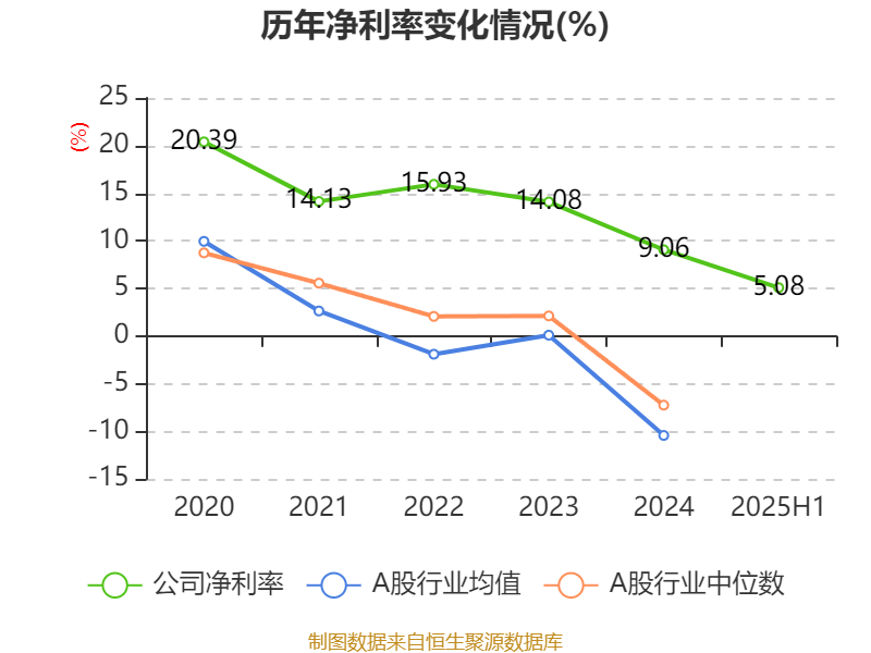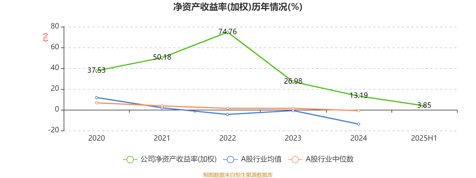 2025年上半年,公司平均净资产收益率为3.85%,较上年同期下降1.37个百分点。