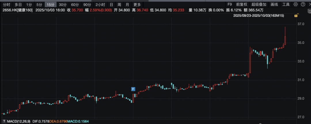 健康160尾盘拉升,收涨12.62%,成交额为3902.83万港元。