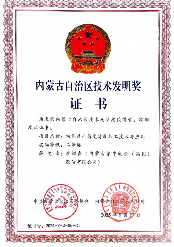 蒙牛集团两项创新成果荣获内蒙古科学技术奖