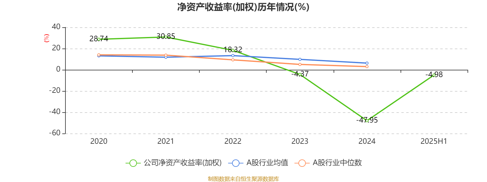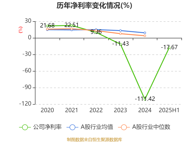 2025年上半年,公司平均净资产收益率为-4.98%,较上年同期上升1.26个百分点。