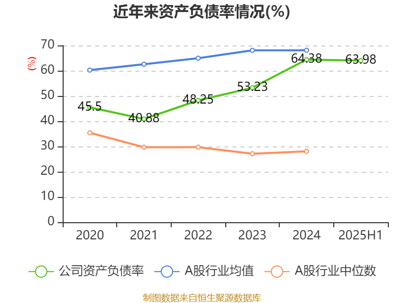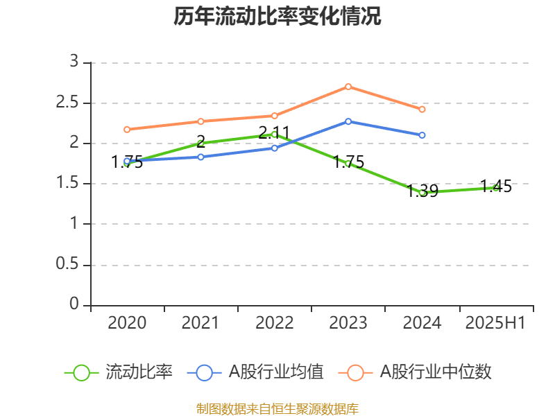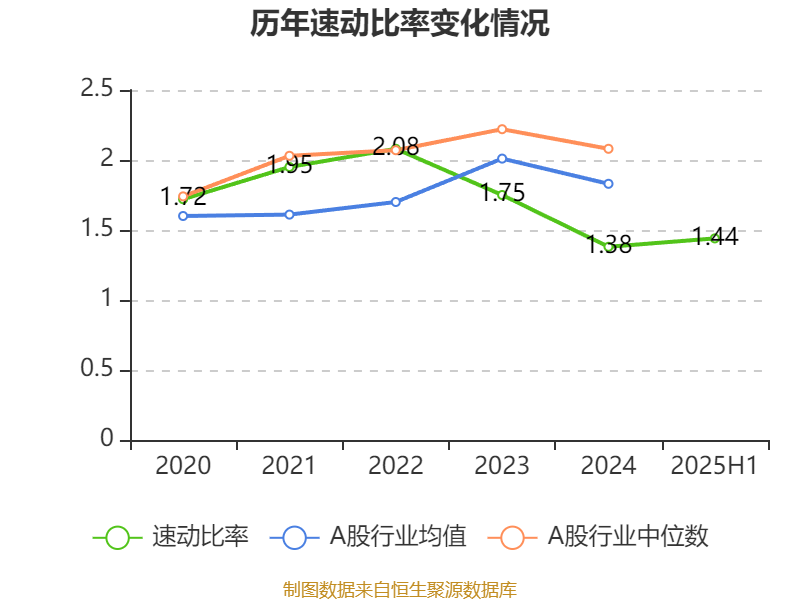 2025年上半年,公司流动比率为1.45,速动比率为1.44。