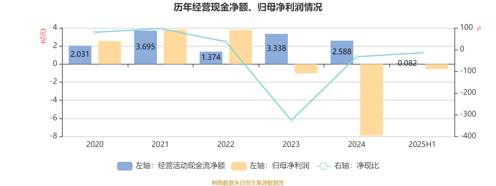 2025年上半年,公司经营活动现金流净额为819.4万元;筹资活动现金流净额-7588.4万元;投资活动现金流净额-6728.9万元。