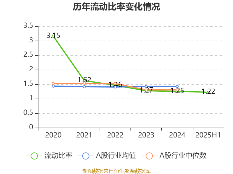 2025年上半年,公司流动比率为1.22,速动比率为0.12。