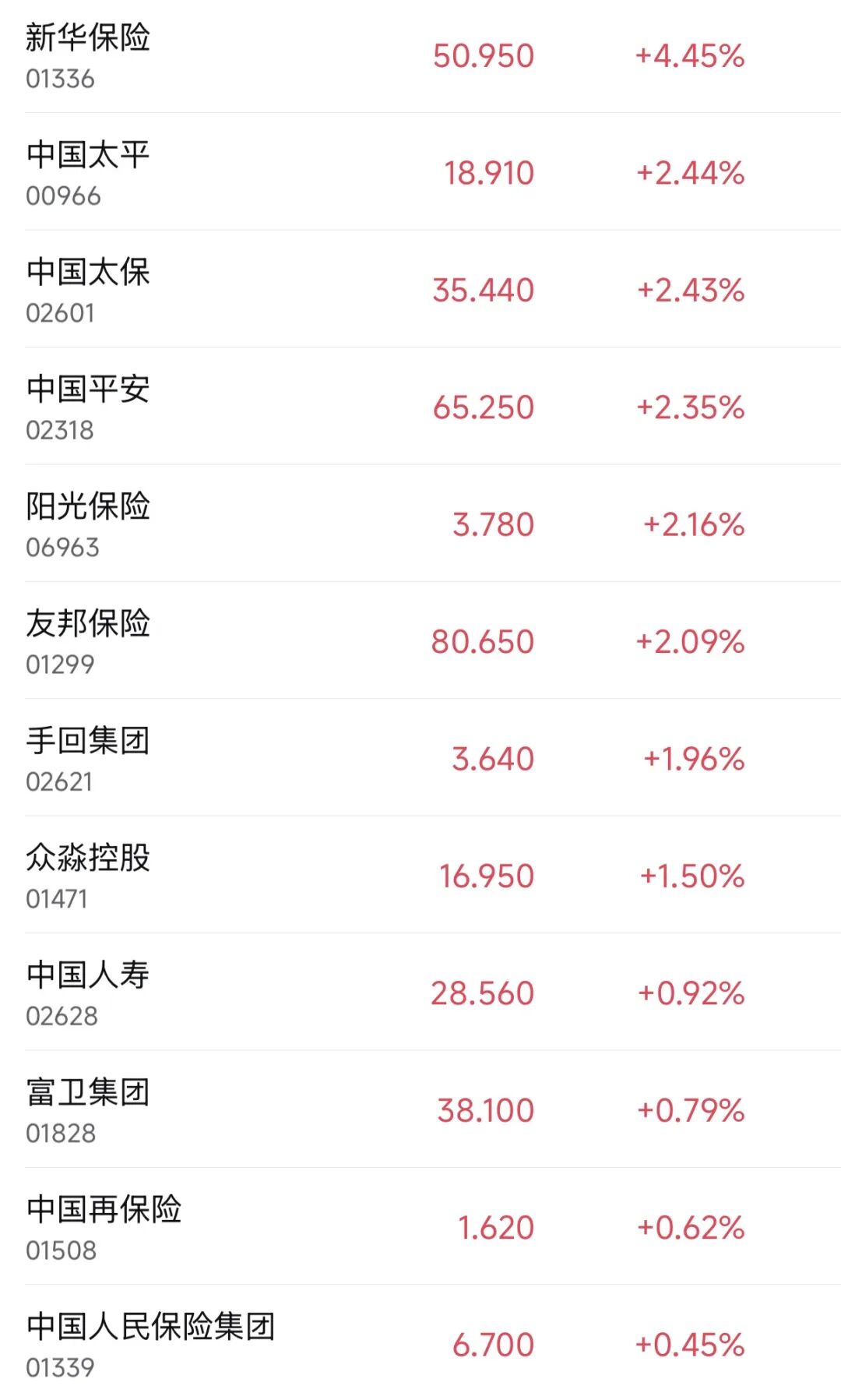 12月15日,港股保险股逆市上涨。截至收盘,新华保险涨超4%,中国太保、中国平安涨超2%,中国人寿涨近1%。今日中国平安A股、H股齐涨,股价均创下四年新高。