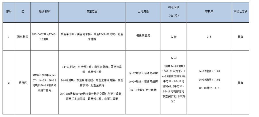 上海市2025年拟出让住宅用地清单信息公示和出让预告(十)