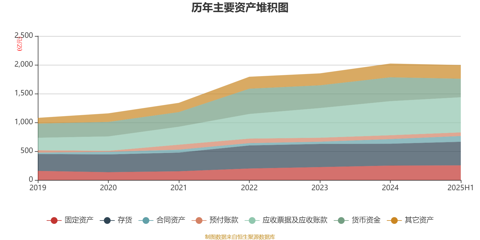 资产重大变化方面,截至2025年上半年,公司货币资金较上期末减少22.21%,占公司总资产比重下降4.34个百分点;存货较上期末增加8.19%,占公司总资产比重上升1.79个百分点;应收票据及应收账款较上期末增加3.08%,占公司总资产比重上升1.28个百分点;合同资产较上期末增加22.46%,占公司总资产比重上升0.97个百分点。