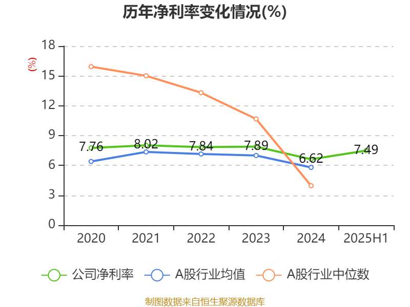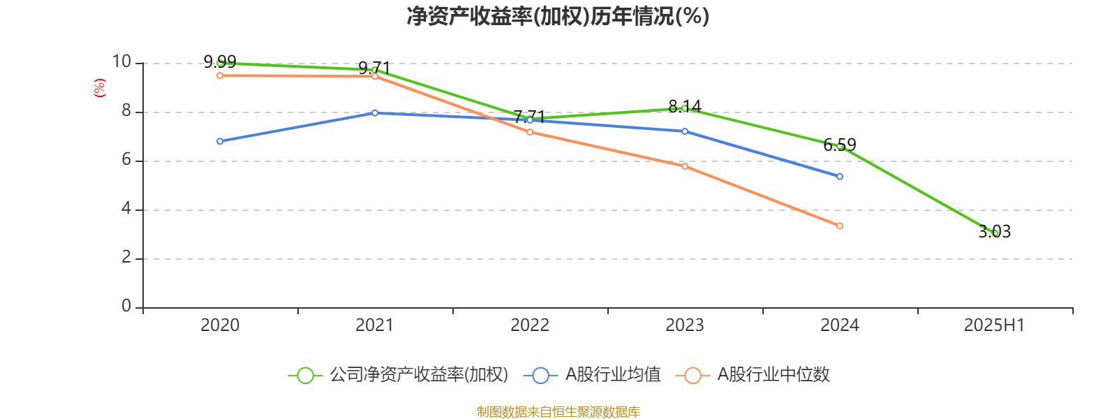 2025年上半年,公司平均净资产收益率为3.03%,较上年同期下降0.88个百分点。