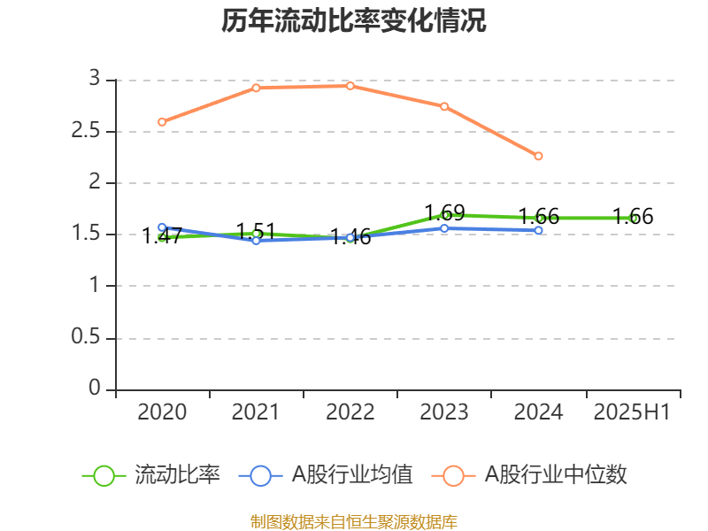 2025年上半年,公司流动比率为1.66,速动比率为1.22。