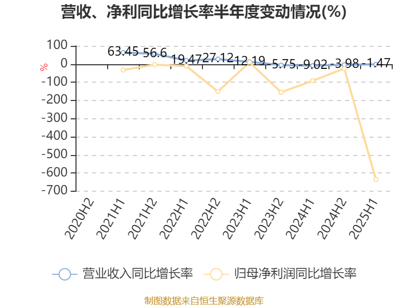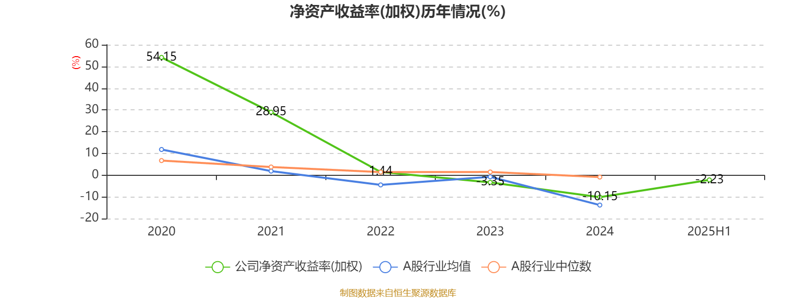 2025年上半年,公司平均净资产收益率为-2.23%,较上年同期下降2.6个百分点。