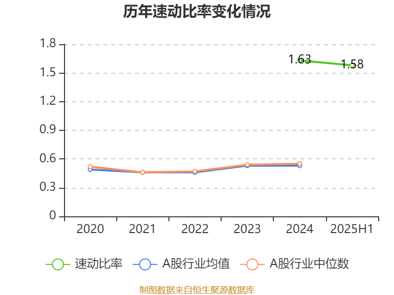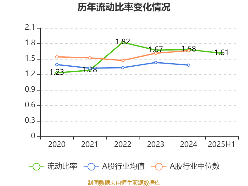 2025年上半年,公司流动比率为1.61,速动比率为1.58。
