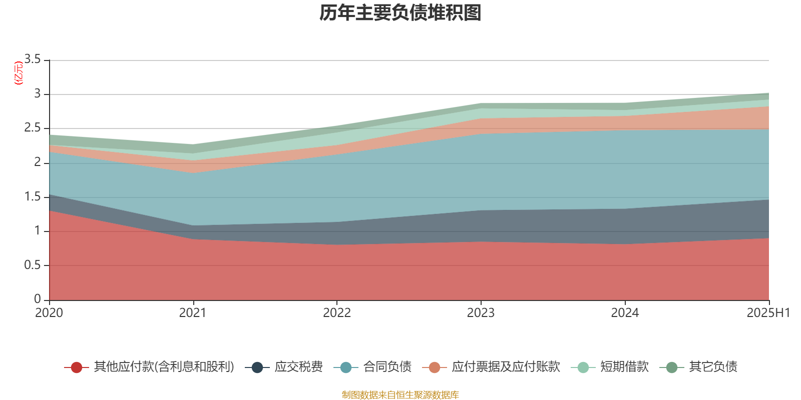 负债重大变化方面,截至2025年上半年,公司合同负债较上期末减少10.76%,占公司总资产比重下降2.29个百分点;应付票据及应付账款较上期末增加62.91%,占公司总资产比重上升2.13个百分点;其他应付款(含利息和股利)较上期末增加10.72%,占公司总资产比重上升1.29个百分点;应交税费较上期末增加8.92%,占公司总资产比重上升0.67个百分点。