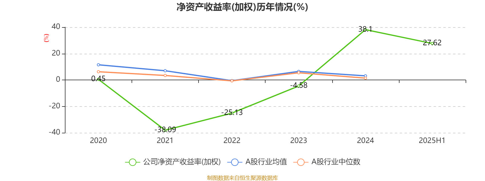 2025年上半年,公司平均净资产收益率为27.62%,较上年同期上升15.78个百分点。