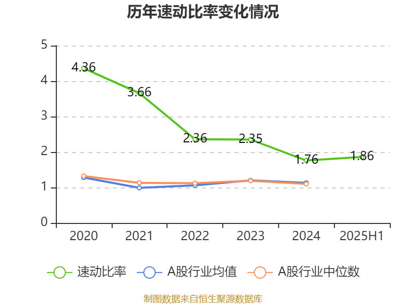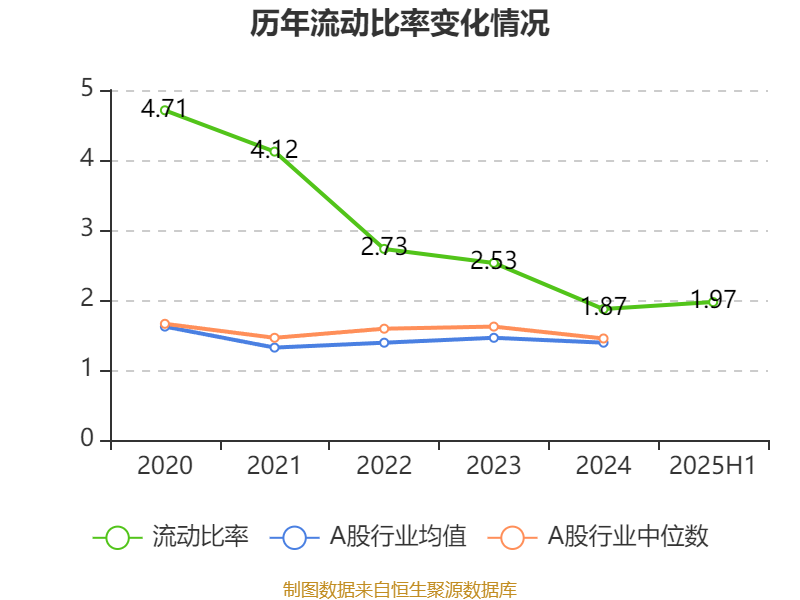2025年上半年,公司流动比率为1.97,速动比率为1.86。