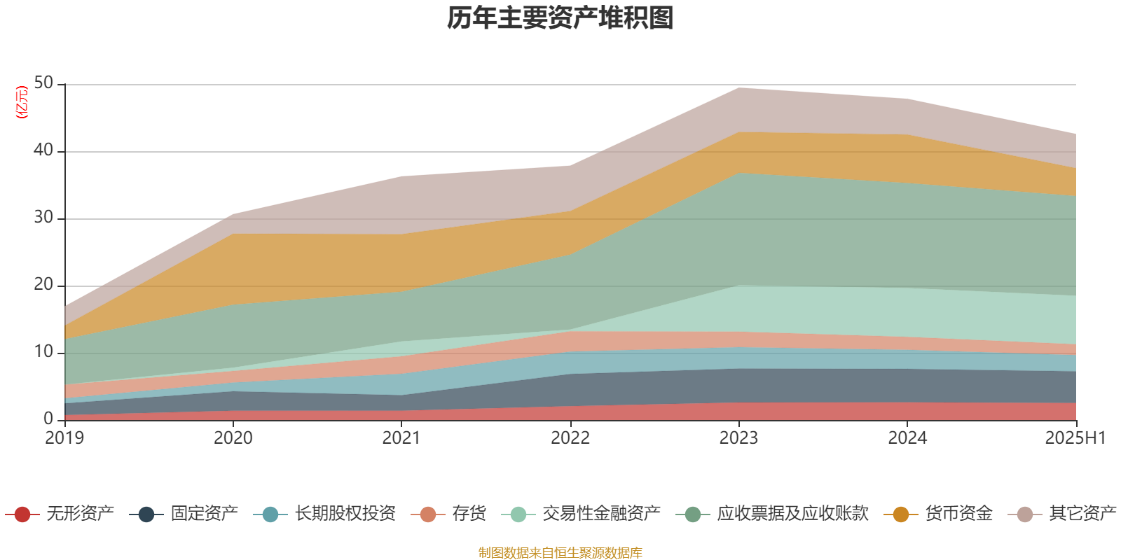 资产重大变化方面,截至2025年上半年,公司货币资金较上期末减少42.72%,占公司总资产比重下降5.39个百分点;应收票据及应收账款较上期末减少5.04%,占公司总资产比重上升2.18个百分点;交易性金融资产较上期末减少0.56%,占公司总资产比重上升1.78个百分点;固定资产较上期末减少5.36%,占公司总资产比重上升0.66个百分点。
