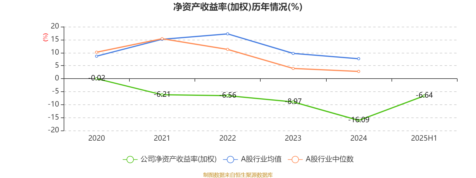 2025年上半年,公司平均净资产收益率为-6.64%,较上年同期下降1.9个百分点。